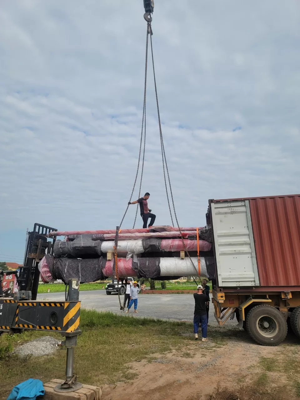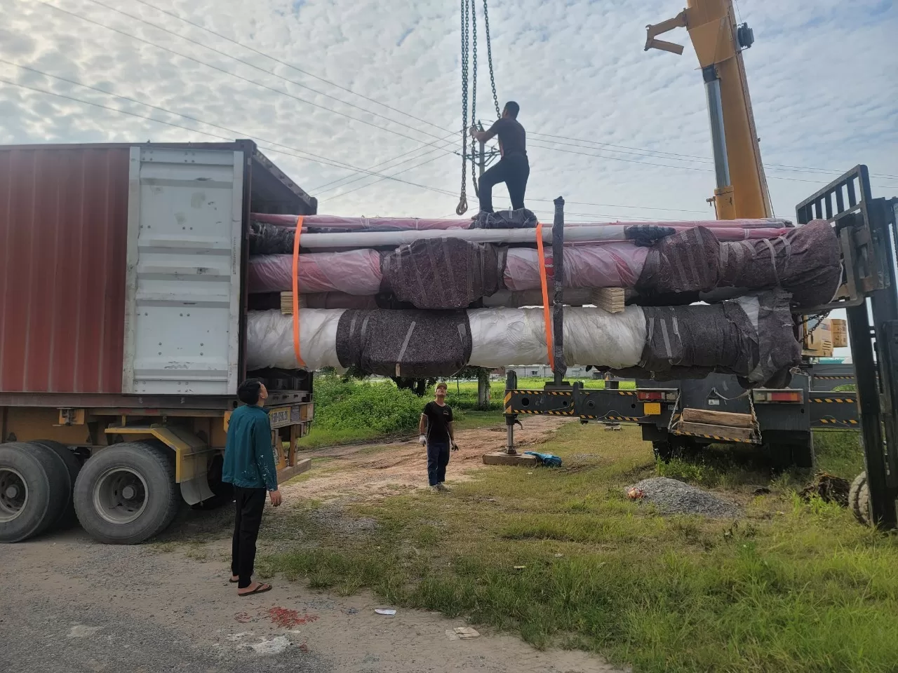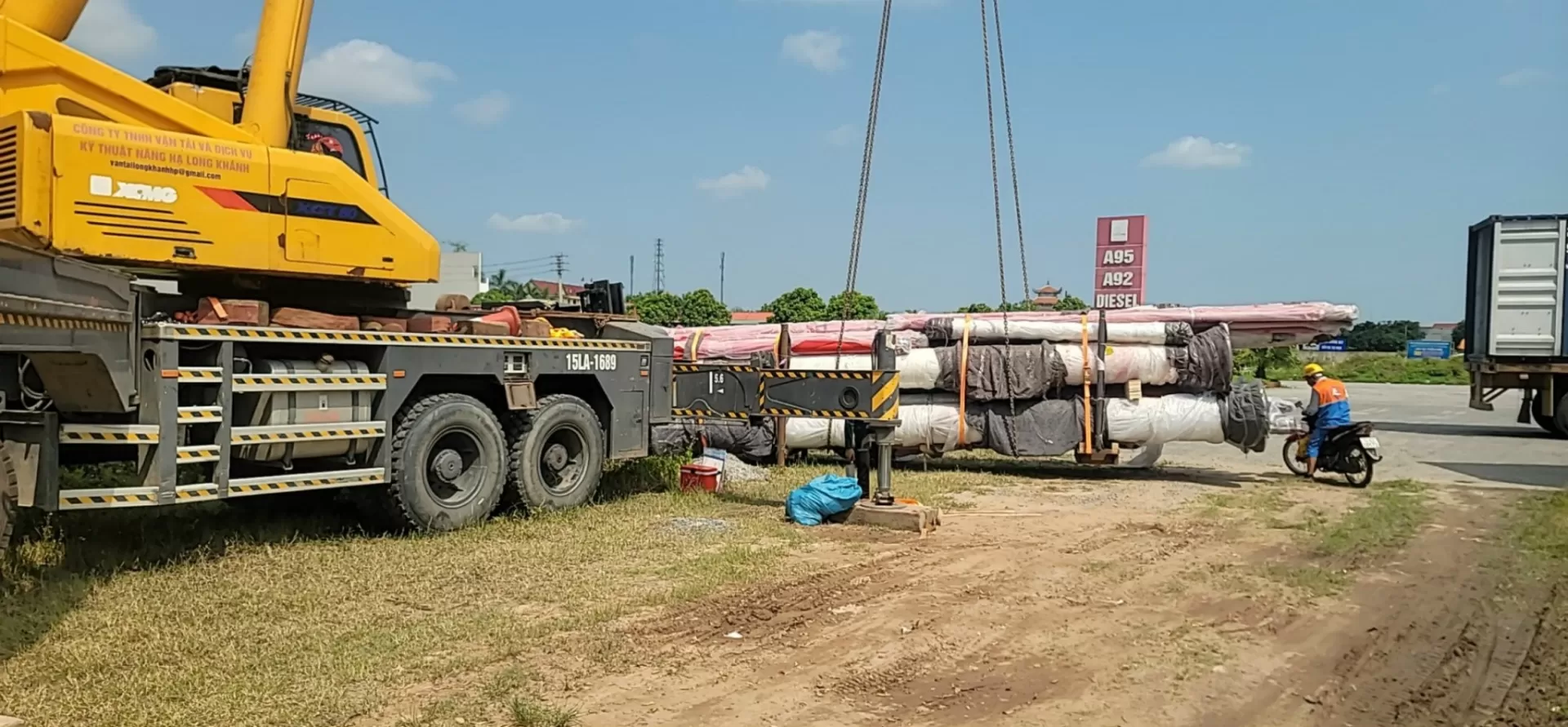 Các lô hàng được giao đến nhiều địa điểm trọng điểm như Huỳnh Phụ – Thái Bình, Vũ Thư – Thái Bình và Nam Định. Với đội xe chuyên dụng và kinh nghiệm xử lý hàng siêu trường, siêu trọng, VIMC Logistics đảm bảo tiến độ và an toàn tuyệt đối trong suốt quá trình vận chuyển.